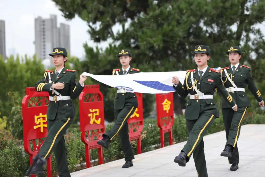 宣誓儀式正式開始前,校國旗護衛(wèi)隊邁著整齊的步伐,鏗鏘有力地走向黨建廣場中心,在雄壯的國歌聲中,全體師生莊嚴肅立,齊唱國歌,注目五星紅旗和恒星科技學院校旗。