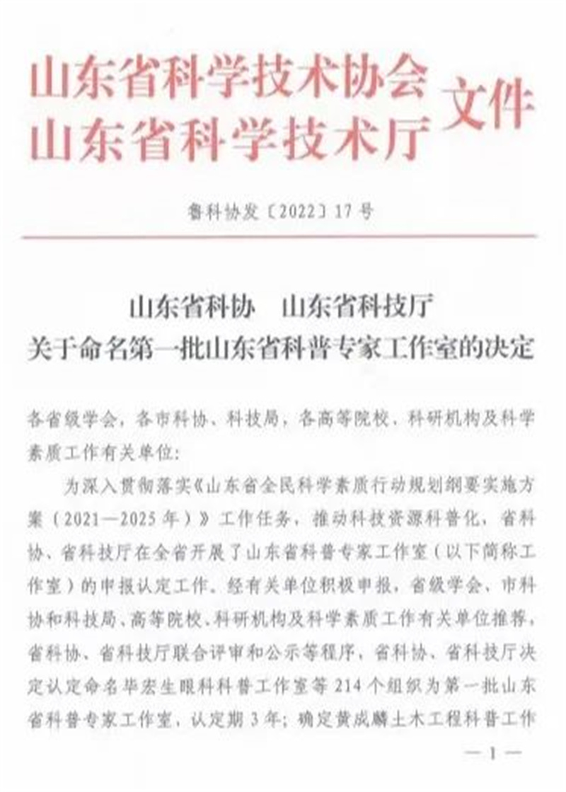 山東省科普專(zhuān)家工作室是省科協(xié)、省科技廳為深入貫徹落實(shí)習(xí)近平總書(shū)記關(guān)于科普和科學(xué)素質(zhì)建設(shè)的重要論述,落實(shí)《山東省全民科學(xué)素質(zhì)行動(dòng)規(guī)劃綱要實(shí)施方案(2021—2025年)》工作任務(wù),推動(dòng)科技資源科普化,提升科技工作者科普服務(wù)能力,組織開(kāi)展的科普平臺(tái)建設(shè),以促進(jìn)全民科學(xué)素質(zhì)提升,為新時(shí)代社會(huì)主義現(xiàn)代化強(qiáng)省建設(shè)積極貢獻(xiàn)力量。