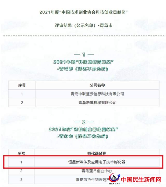 中國民生新聞網(wǎng)訊 5月7日,中國技術(shù)創(chuàng)業(yè)協(xié)會主辦的“2021年度中國技術(shù)創(chuàng)業(yè)協(xié)會科技創(chuàng)業(yè)貢獻(xiàn)獎”評審結(jié)果正式公示,恒星新媒體及應(yīng)用電子技術(shù)孵化器榜上有名,這是繼榮獲2021年度國家級科技企業(yè)孵化器后的又一項國家級殊榮。