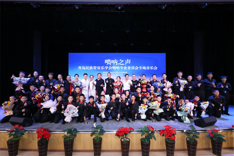 青島民族管弦樂學(xué)會(huì)、青島歌舞劇院民族樂團(tuán)各位領(lǐng)導(dǎo)同社會(huì)各界的專家,教授,老師和觀眾們一起觀看了這場精彩的嗩吶盛會(huì)。