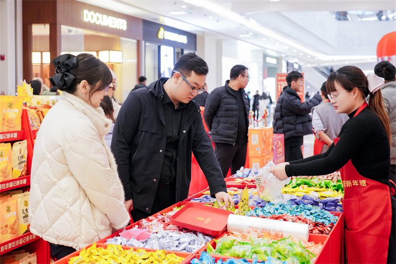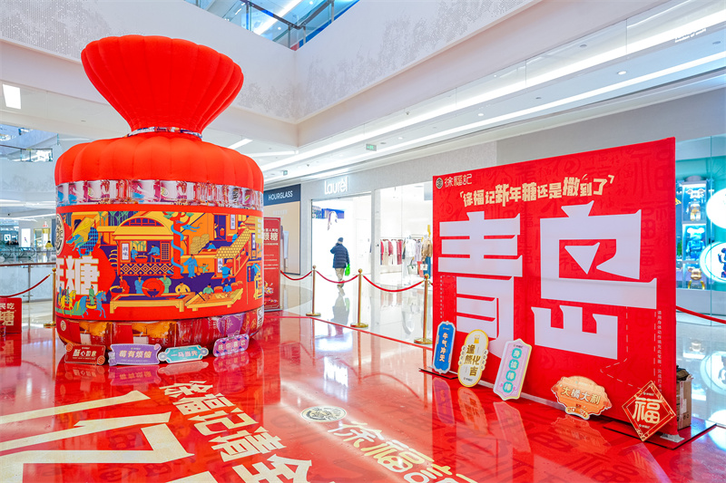 在青島萬象城商場(chǎng)里,新年糖花車巡游的趣味互動(dòng)區(qū)早已排起長隊(duì),將甜蜜氛圍推向更盛。