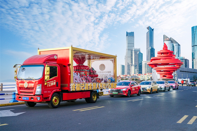 當(dāng)徐福記巨型新年糖花車裹挾著海風(fēng)駛?cè)肭鄭u,在冬日陽光的映襯下,這座山海之城的年味瞬間被拉滿。“哎喲,是新年糖花車!快給孩子抓兩顆,沾沾新年福氣!”一位帶著娃的青島大姨攥著剛領(lǐng)到的糖果,笑著招呼身邊人。
