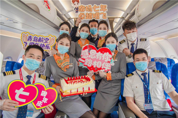 2021年4月26日,青島航空迎來開航七周年,為將這份喜悅與旅客分享,感謝旅客一直以來的支持,青島航空在QW9851航班上特別舉辦了“激揚七年 卓越騰飛”7周年慶主題航班活動,在溫馨熱烈的氛圍中,重溫青島航空的藍天初心,展望未來浩瀚征程。