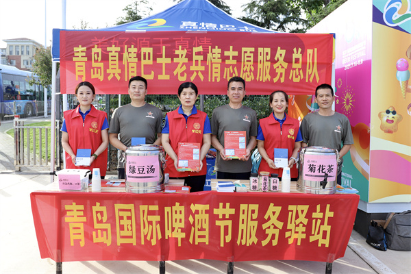 在青島火車站、西客站等主要公交樞紐站,都能看見身著刺繡五角星紅色旗袍的真情巴士客服志愿者,他們?yōu)榘朔接慰吞峁┚€路咨詢、出游指導(dǎo)等服務(wù)。在啤酒節(jié)城周邊,可以看到身著不同顏色的馬甲的真情巴士志愿者,21個團(tuán)隊的稱呼雖然各有不同,但是他們都有一個共同名字—“聚真情”志愿服務(wù)聯(lián)盟。