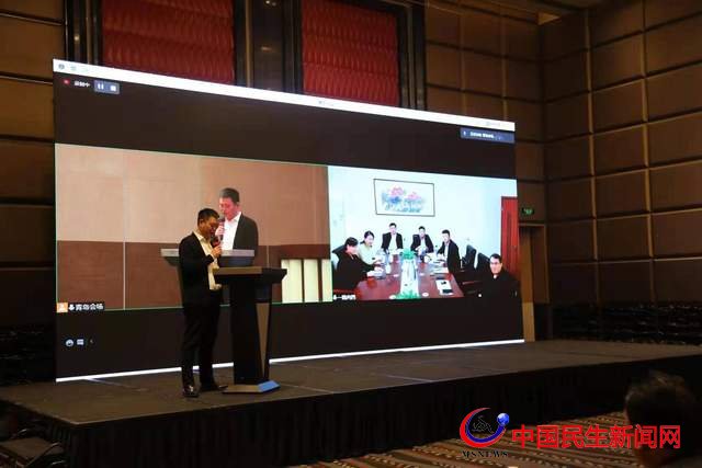 商顯福通過視頻連線在霍爾果斯向與會(huì)企業(yè)家致辭
