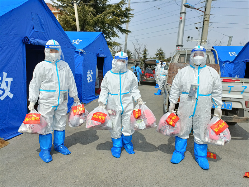 3月20日,四輪核酸檢測均呈陰性的“志愿者小榮”正式上崗。“當(dāng)了志愿者就有當(dāng)好‘螺絲釘’的覺悟,哪里需要就往哪里釘。”榮小軍告訴記者,上崗首日,他便與其他志愿者們一起維持核酸檢測秩序,第二天,則一起幫忙為社區(qū)內(nèi)被封閉在家的居民們發(fā)放生活物資,“昨天一天得發(fā)放了幾百份,我們需要把物資從社區(qū)居委會(huì)運(yùn)送到各個(gè)胡同,然后挨家挨戶送到居民家門口。”
