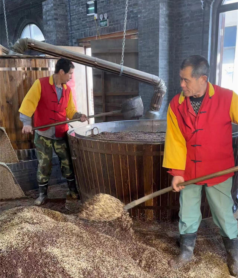 展廳內栩栩如生的泥人,展示了宏源傳統(tǒng)手工釀酒工藝的全部過程,從選料、粉碎、踩曲、入窖、出窖、攪拌、蒸餾、窖藏,將“水必甘、糧必精、曲必陳、器必潔、工必細、貯必久、管必嚴”的傳統(tǒng)古法釀酒工藝展現(xiàn)的淋漓盡致。