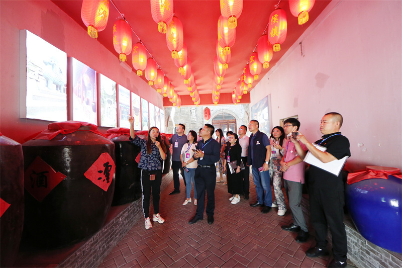 青島快訊 ( 董成臻 徐優(yōu)) 9月29日上午,在壽光市侯鎮(zhèn)宏源酒業(yè)有限公司,“中國民生新聞網(wǎng)山東頻道新聞與運營研討會”在這里成功舉辦,期間,他們隨著酒廠工作人員的腳步,聞著空氣中的酒香,參觀了宏源酒文化博物館。