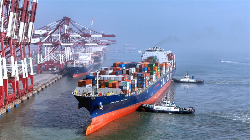 “今天在泊作業(yè)船舶11條,當(dāng)天靠離船舶22艘次,作業(yè)箱量突破3萬標(biāo)箱!其中,有10條船舶是服務(wù)RCEP各國家的船舶,航線連接了中日韓、東盟及澳洲、新西蘭的多個重要港口,元旦第一天堅守崗位,服務(wù)國家,意義非凡!”在山東港口青島港QQCT作業(yè)碼頭,操作三大隊(duì)隊(duì)長孫江精神昂揚(yáng)。