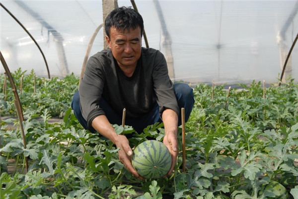 孫洪寶說,他20多年前就開始種瓜,大呂西瓜每年四五月份“搶鮮上市”,是青島地區(qū)上市最早的本地西瓜。每年到了收獲季節(jié),商販紛紛上門收購,銷路不愁。他夫妻兩種植的兩畝西瓜大棚,僅頭茬西瓜就可收入3.5萬元。今天氣暖和,現(xiàn)在大棚內(nèi)溫度可達(dá)34度,有益于西瓜生長,再過20多天預(yù)計(jì)頭茬西瓜就上市。“今年我的2畝大棚西瓜收成肯定不錯(cuò),西瓜上市時(shí),邀請你來吃咱大呂的頭茬西瓜哈”孫洪寶笑呵呵地說道。