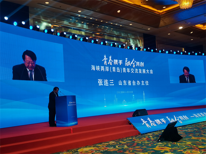 山東省臺(tái)辦主任張連三在致辭中表示,習(xí)近平總書記高度重視、關(guān)心兩岸青年成長(zhǎng)、成才,強(qiáng)調(diào)“要持續(xù)為兩岸青年成長(zhǎng)、成才、成功創(chuàng)造更好條件、更多機(jī)遇”,本次大會(huì)是貫徹落實(shí)習(xí)總書記重要指示的具體舉措。山東歷來(lái)重視支持臺(tái)灣青年來(lái)魯發(fā)展,在全省開展臺(tái)灣青年來(lái)魯實(shí)習(xí)就業(yè)促進(jìn)行動(dòng),推進(jìn)臺(tái)灣青年享受支持政策同等待遇,將繼續(xù)為臺(tái)灣青年來(lái)山東學(xué)習(xí)就業(yè)生活提供更多機(jī)會(huì)和便利。當(dāng)前,山東正加快建設(shè)綠色低碳高質(zhì)量發(fā)展先行區(qū),打造高水平對(duì)外開放新高地,經(jīng)濟(jì)社會(huì)發(fā)展活力迸發(fā)。青島是山東龍頭城市,充滿發(fā)展機(jī)遇,熱誠(chéng)歡迎廣大臺(tái)灣青年來(lái)青島、來(lái)山東追夢(mèng)、筑夢(mèng)、圓夢(mèng),共創(chuàng)祖國(guó)統(tǒng)一、民族復(fù)興的歷史偉業(yè)。
