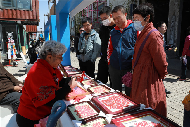 同期,在青島紡織谷國棉大道上的文化市集,也匯聚了眾多市北區(qū)民俗記憶和潮流文化,紅艷欲滴的糖球,精美絕倫的木版畫,活靈活現(xiàn)的泥塑,鮮艷奪目的布老虎,還有獨具特色的手工藝品,甚至科技感十足的電競比賽展示……人們在不同展位前駐足,精美的展品也攜帶著一個個精美的故事映入眼簾,文化市北的底蘊與傳承已在人們的心中蔓延開來。