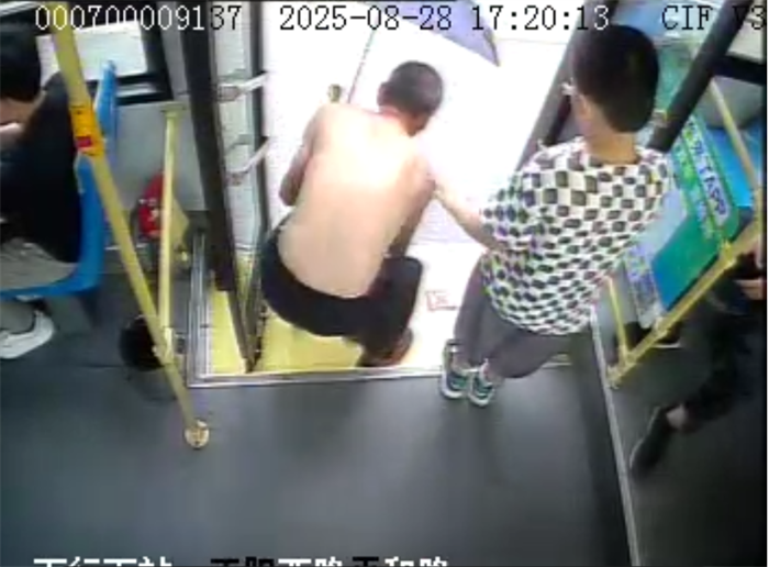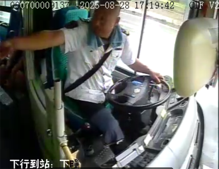 8月28日17:18左右,青島城運膠州交通發(fā)展集團3007路公交駕駛員高緒岐,駕駛車輛行駛至城陽區(qū)下疃附近時,天空突降大雨。此時,一位老漢帶著一名男童正準備在下疃站下車。出門時未帶雨傘的二人,瞬間被這場突如其來的大雨困住。