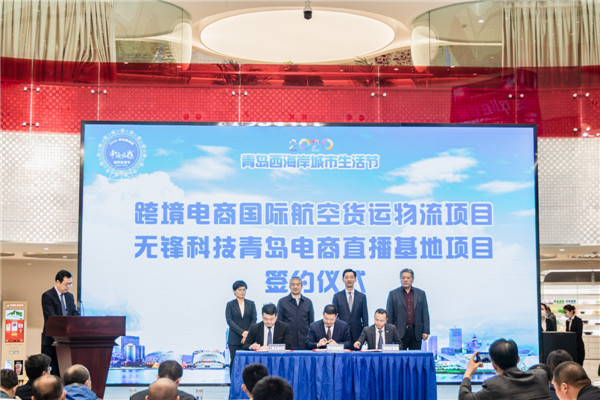 當(dāng)天,跨境電商國(guó)際航空貨運(yùn)物流項(xiàng)目和無(wú)鋒科技青島直播電商基地項(xiàng)目也在青島西海岸新區(qū)簽約落地。