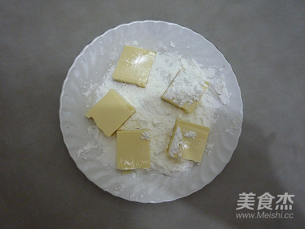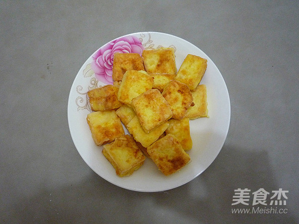 4.切好的豆腐均勻的蘸上一層干淀粉