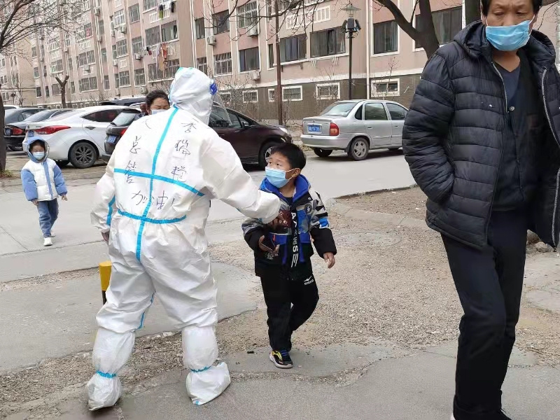 季瑞艷的愛(ài)人徐松立是萊西市公用事業(yè)服務(wù)中心的一名黨員,疫情開始后,居家隔離的他不僅肩負(fù)著照顧即將高考的女兒的責(zé)任,還踴躍參加社區(qū)臨時(shí)黨支部組織的維持核酸檢測(cè)秩序,卡點(diǎn)執(zhí)勤,幫黨員代買藥等。她的家就在她所負(fù)責(zé)的核酸檢測(cè)的小區(qū)里,近在咫尺卻不能回家的她,和愛(ài)人還有女兒見(jiàn)面都是在核酸檢測(cè)現(xiàn)場(chǎng),女兒打電話抱怨說(shuō),每次去做核酸她都假裝不認(rèn)識(shí)。面對(duì)連軸轉(zhuǎn)的勞累,她沒(méi)有落淚;面對(duì)居民們的抱怨和不理解她沒(méi)有落淚;面對(duì)抗擊疫情、守護(hù)家園的壓力她沒(méi)有落淚;但是面對(duì)還有兩個(gè)多月就要高考的女兒的抱怨時(shí),她落淚了。