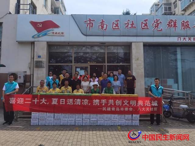 8月18日上午,民建青島市委會(huì)在八大關(guān)街道辦事處八大關(guān)社區(qū)開(kāi)展“喜迎二十大,夏日送清涼,攜手共創(chuàng)文明典范城”慰問(wèn)活動(dòng),為轄區(qū)環(huán)衛(wèi)工人和社區(qū)工作人員送去價(jià)值5000元的礦泉水和解暑飲料。民建青島市委會(huì)秘書長(zhǎng)曹麗輝、辦公室主任全淵、社會(huì)服務(wù)處處長(zhǎng)許影、企業(yè)委員會(huì)副主任趙靜,八大關(guān)街道辦事處主任王佩佩、八大關(guān)社區(qū)黨委書記張巍峰、八大關(guān)社區(qū)工作站負(fù)責(zé)人張恒銘參加活動(dòng)。同時(shí),現(xiàn)場(chǎng)還有10余名環(huán)衛(wèi)工和社區(qū)工作人員代表參加了活動(dòng)。