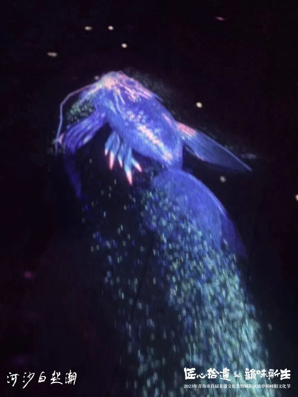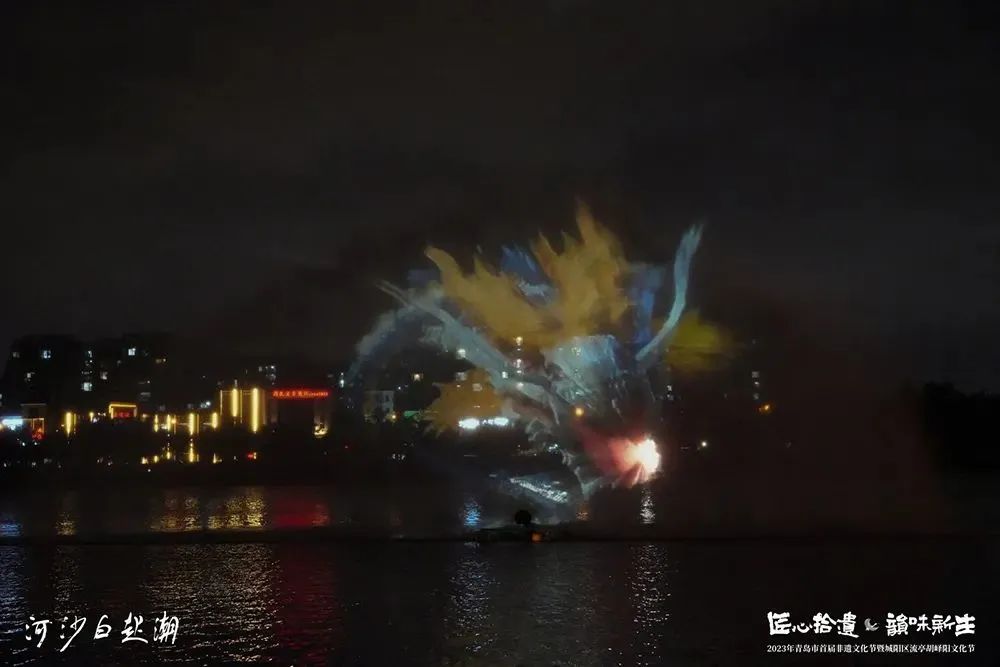 讓非遺“潮”起來!開幕式現(xiàn)場,“非遺+科技”令人耳目一新,流連忘返。在非遺水陸光影秀《潮起白沙河》中,白鷺、文鰩魚、山、海、云、傳統(tǒng)書法等元素通過水幕光影的形式,為大眾營造出超酷炫的夢幻空間,吸引了眾多游客打卡留影,熱度空前。在白沙河這個(gè)城陽未來的新中心,以文化創(chuàng)意作為驅(qū)動(dòng),以美學(xué)作為引領(lǐng),通過“非遺+藝術(shù)+科技”的形式,用一場沉浸式的光影來喚醒民眾對非遺文化創(chuàng)新發(fā)展的熱情,以及對人文與自然、歷史與當(dāng)代、經(jīng)濟(jì)發(fā)展與文化傳承關(guān)系的關(guān)注,是再合適不過了。
