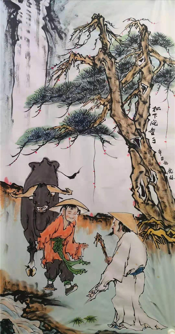 一本畫冊臨摹完了,他就去新華書店、圖書館,尋找與范曾有關(guān)的介紹,作品,然后拍下來,或者買回來,進(jìn)行臨摹。他從繪畫基礎(chǔ)開始學(xué)起,當(dāng)時連墨分幾色都不懂的蒙童小伙子,到如今信手就畫出范曾的作品,并且在范曾作品基礎(chǔ)上進(jìn)行創(chuàng)新。從表情、動作、肢體語言,無不維妙維肖。