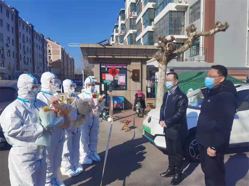 在第112個“三八”國際婦女節(jié)到來之際,萊西市民政局黨組書記、局長隋九輝和黨組副書記、副局長宮振學同志為參與到管控點小區(qū)執(zhí)勤的女同胞們送去鮮花和節(jié)日的問候。