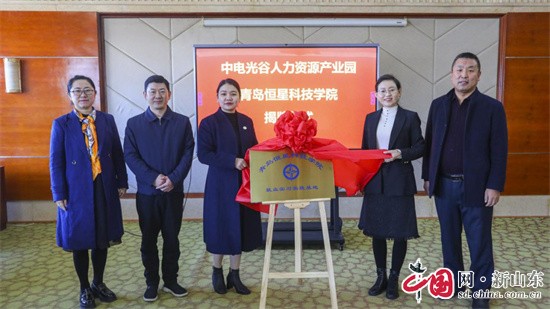 青島西海岸新區(qū)光谷人力資源產(chǎn)業(yè)園總經(jīng)理郭清清,青島恒星科技學(xué)院商學(xué)院執(zhí)行院長(zhǎng)高敏,教學(xué)院長(zhǎng)朱燕娜,商學(xué)院特聘教授劉長(zhǎng)城等出席揭牌儀式。