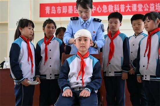 5月8日,青島即墨區(qū)120急救中心與即墨區(qū)數(shù)字裝備園實驗小學(xué)聯(lián)合開展“急救知識進校園”主題活動,向?qū)W生傳授心肺復(fù)蘇、急救包扎等應(yīng)急救護知識,提高學(xué)生緊急避險意識和應(yīng)急救護能力,迎接“世界紅十字日”。2025年世界紅十字日的主題是“關(guān)愛生命,共享健康”。