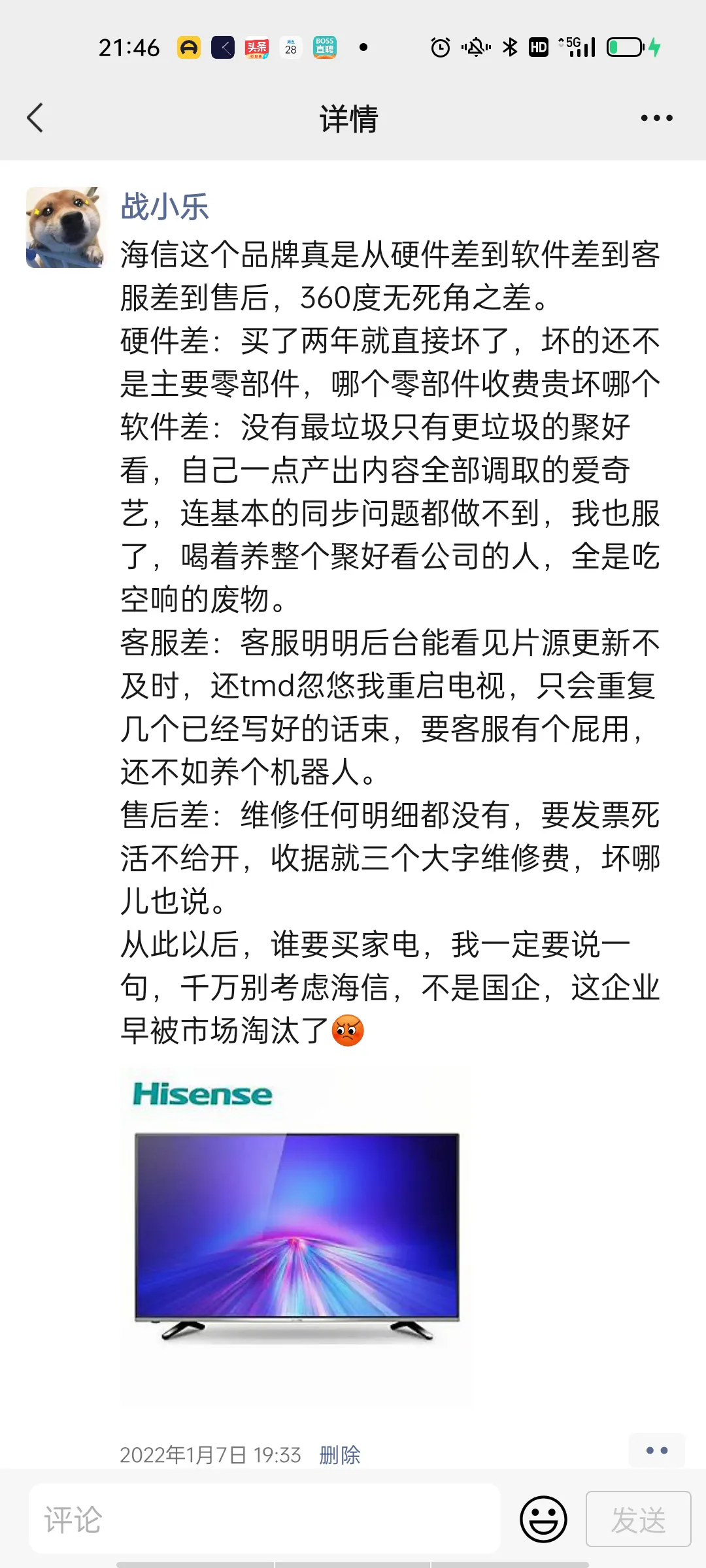 @海信 @海信電視 海信電視買(mǎi)了不到三年壞了硬件壞軟件壞了軟件壞硬件,這次不想修了,反正馬上618了想學(xué)老羅砸個(gè)電視現(xiàn)在征集