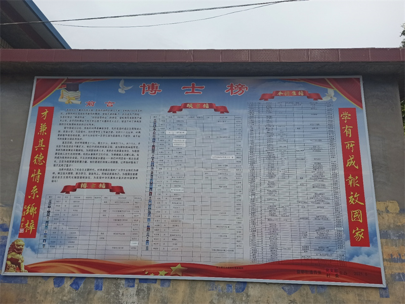 )在青州市益都街道西張村,有一面讓人贊嘆不已的博士榜,扎根軍隊精忠報國的張曉芳、張玉波,耕耘三尺講臺教書育才的劉民千、劉永強、劉菲菲、劉永栓,治病救人造福百姓的張劍、張超、劉世錦……115名功成名就的西張“佼佼者”皆在榜中,“學(xué)有所成報效國家,才兼其德情系鄉(xiāng)梓”的對聯(lián)高度濃縮了西張人才們的人生軌跡。