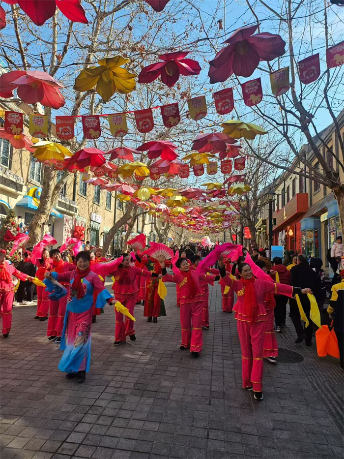 紅燈高掛映古街,秧歌歡騰鬧新春。正月初一,2026年青島蘿卜·元宵·糖球會(huì)在市北區(qū)大鮑島文化休閑街區(qū)盛大啟幕。百年里院街巷被紅黃相間的新春裝飾裝點(diǎn)得喜氣洋洋,民俗巡游隊(duì)伍身著艷紅服飾踏街起舞,中山路地鐵站口人頭攢動(dòng)、客流如織,老字號(hào)糖球攤位前排起長(zhǎng)隊(duì),上午11時(shí)即迎來(lái)客流高峰,首日便迎來(lái)開(kāi)門紅,為市北新春文旅市場(chǎng)點(diǎn)燃“第一把火”。